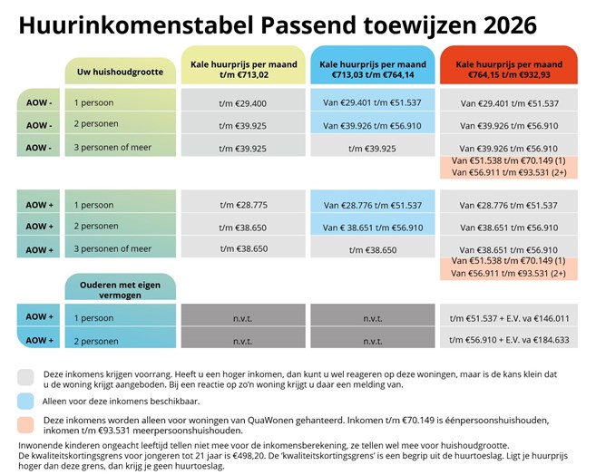 De overheid wil dat u een woning huurt die bij uw inkomen past. Hier heeft zij regels voor opgesteld. Deze regels vertellen u en de verhuurders tot welke huurprijs u maximaal mag huren. Dit wordt bepaald aan de hand van uw inkomen en huishoudgrootte. De term die hiervoor wordt gebruikt is 'passend toewijzen’.